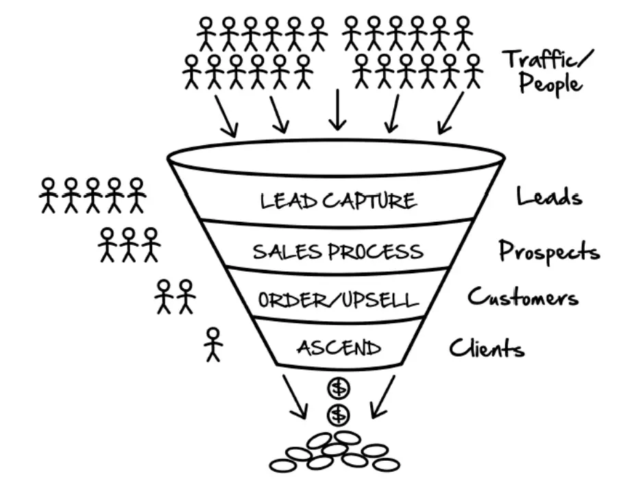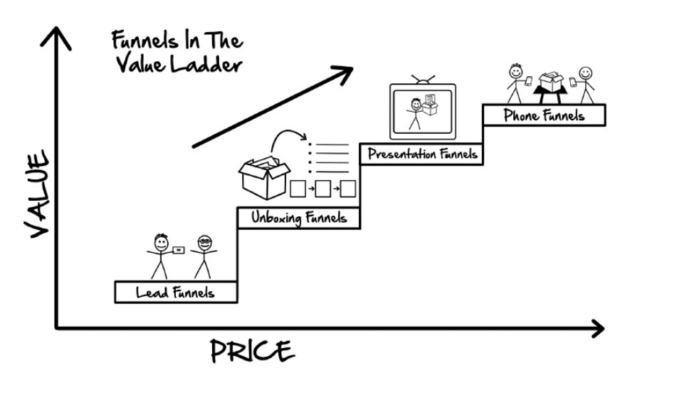 獲取流量->獲取名單->低價商品->中價商品->高價商品->極高價商品